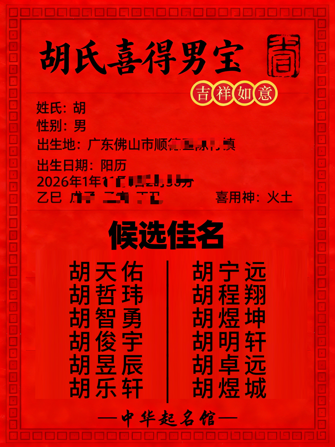 中华起名馆康老师起名案例分享